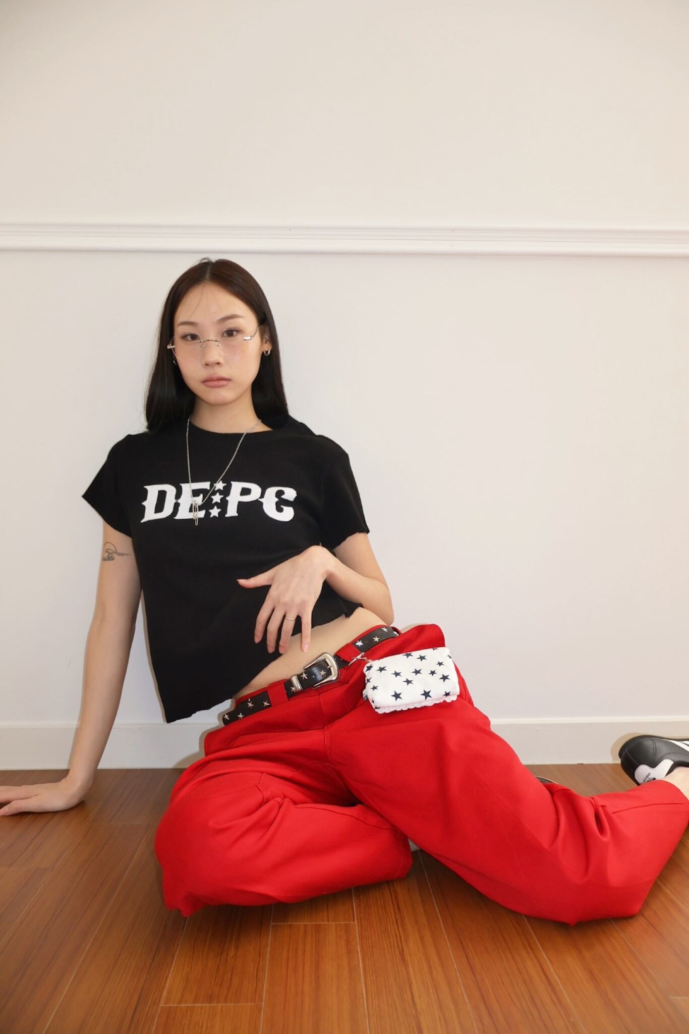 ・ヴィンテージ感のあるDEPCロゴプリントがポイントのワッフルTシャツ
