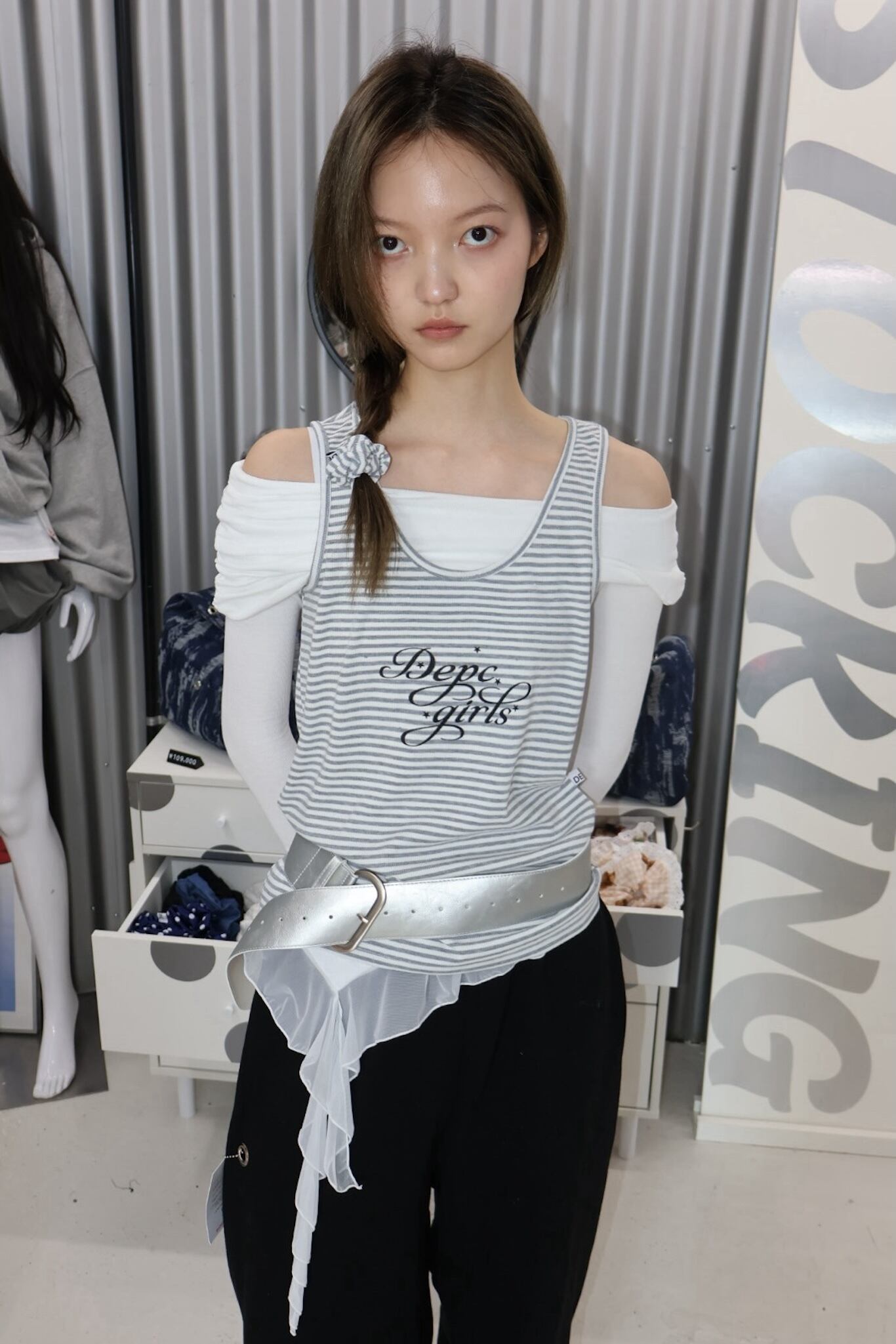 STRIPE SLEEVELESS(KHAKI / GRAY)