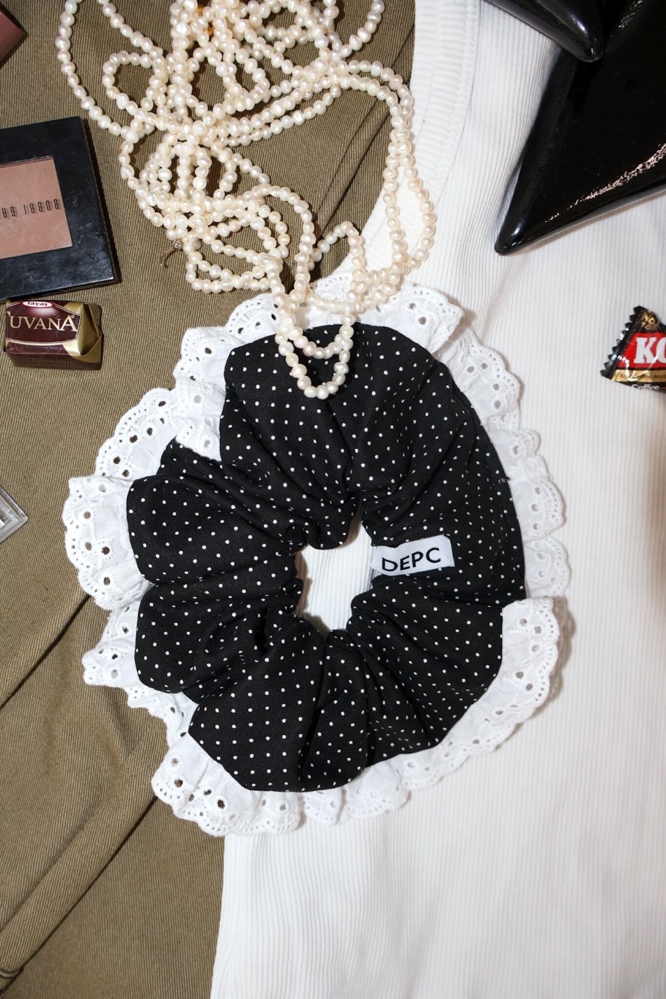 繊細なドット柄とコットンレースの組み合わせで、ラブリーな雰囲気を演出