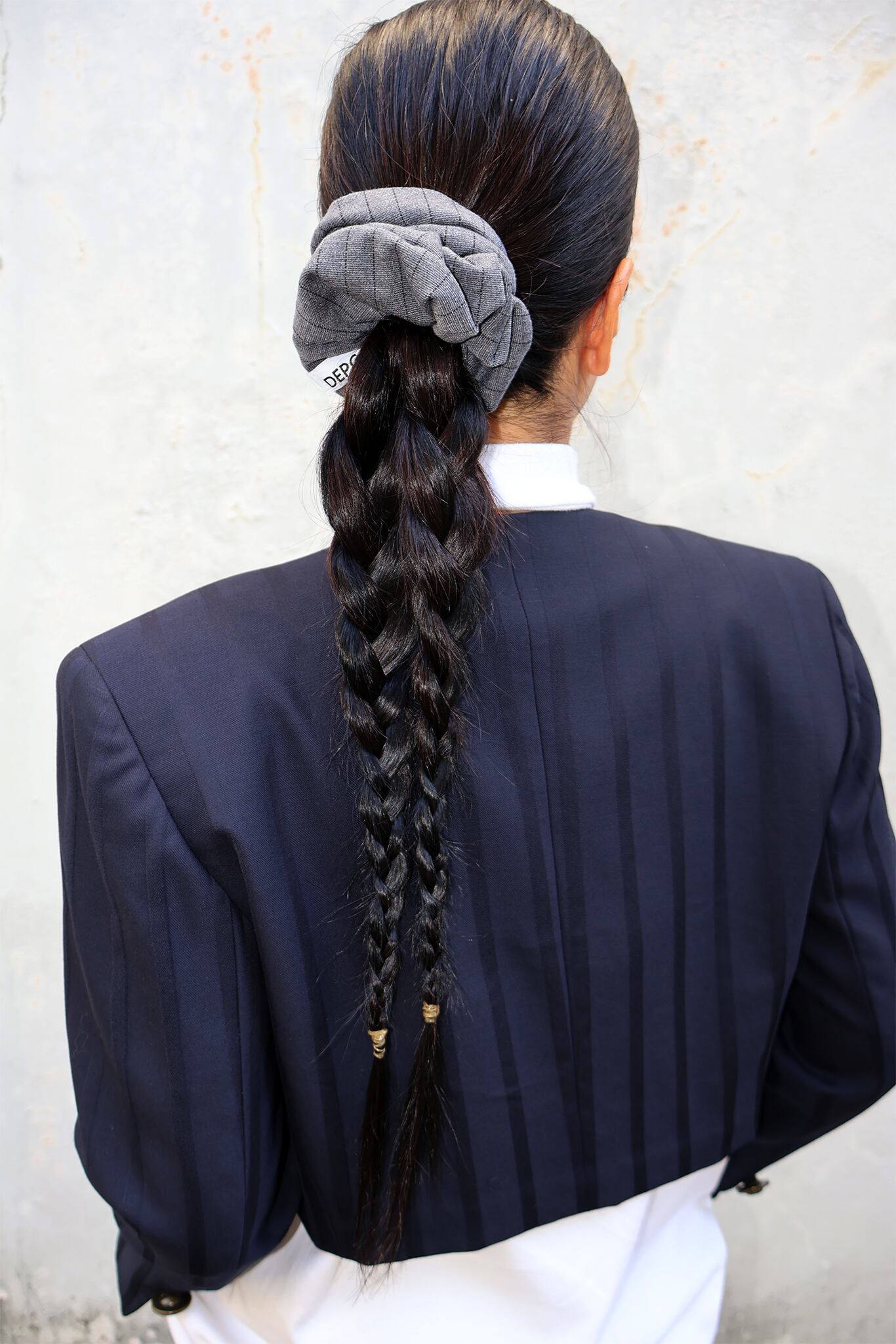 ・モダンなデザインのストライプ柄が特徴のシュシュ